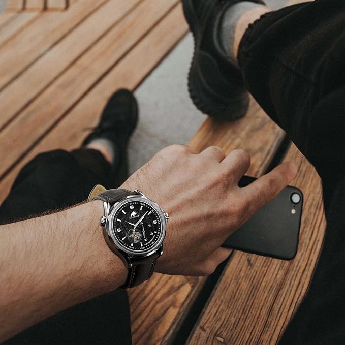 【長さ調整可能】ベルトには9つの穴が設けられており、手首に合わせて長さを自由に調整でき、男女を問わ ずお使いいただけます。また、バネ棒4本及びバネ棒外しが付属し、交換を簡単に行えます