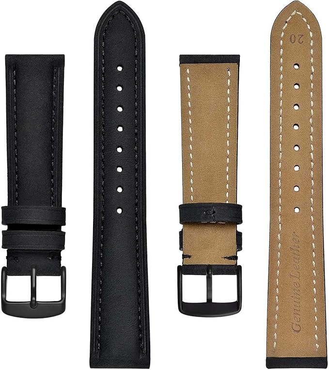 [BISONSTRAP] 腕時計バンド 14mm 15mm 16mm 17mm 18mm 19mm 20mm 21mm 22mm 23mm 24mm スエード 本革 時計ベルト ブラックバックル | KAZESHOP