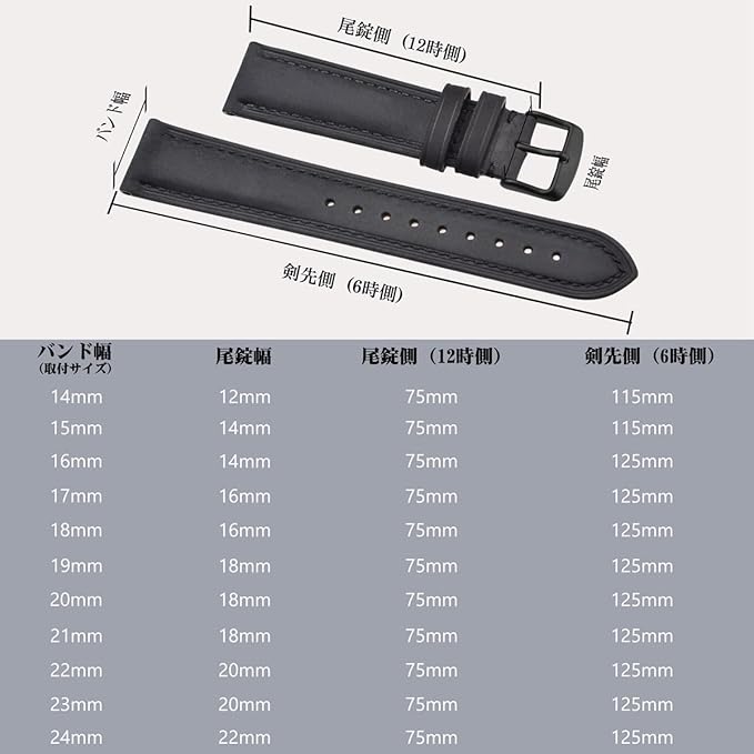 【パッケージ内容】 1*腕時計ベルト、1*時計ベルトバネ棒外し、4*バネ棒 ラグ幅 14mm、15mm、16mm、17mm、18mm、19mm、20mm、21mm、22mm、23mm、 24mmの腕時計やスマートウォッチに適用します。 【ご注意】 本革ですので、水濡れや長時間の使用には色褪せなどの状況が避けられません。直接に水に浸透しないでく ださい。