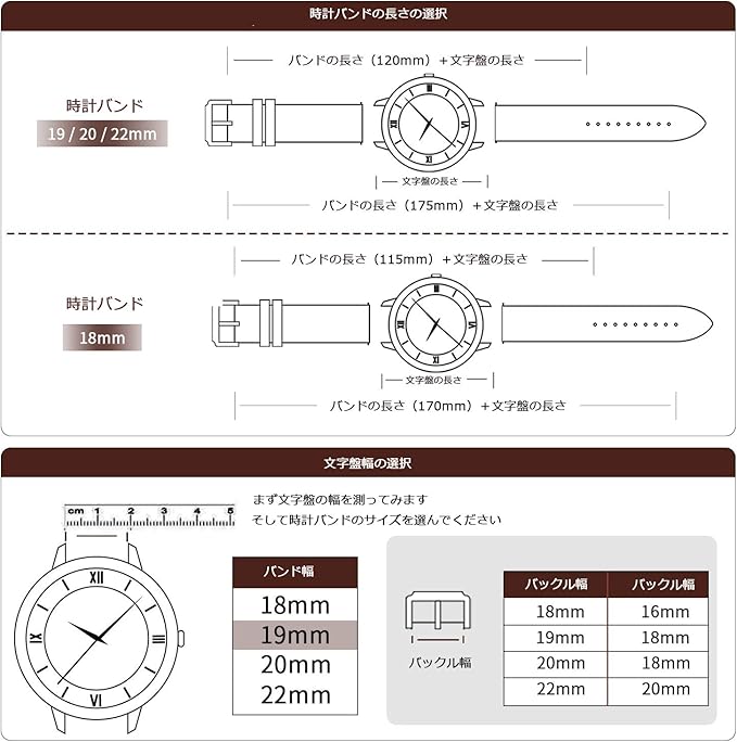 TStrap レザー時計ベルト20mm 18mm 19mm 22mm 本革腕時計バンド スマートウォッチベルト交換 メンズ 時計ばんど 時計べると バックルとスライド式バネ棒付き | KAZESHOP