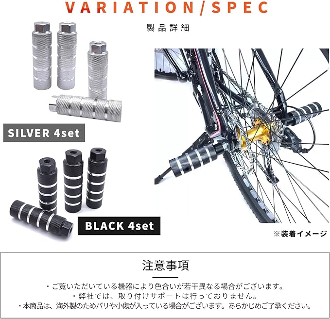バリエーション:シルバー/ブラックの2バリエーション お手持ちの自転車に合わせてステップアイテムをお選びください。