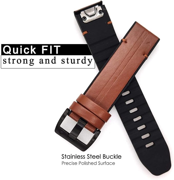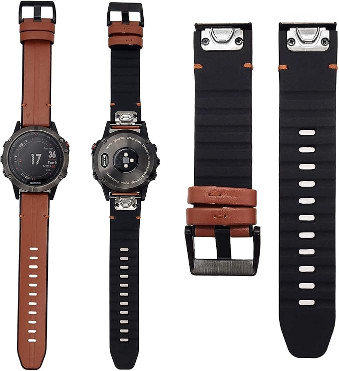 Ahayo QuickFit 22mm 交換本革 バンド に適合するガーミンFenix 8 47mm / Fenix 7/ epix Pro 47mm/ Fenix 6 / Fenix 5 / Approach S62,シリコンハイブリッドデザインの通気性ストラップベルト用の Garmin Approach S70 47mm (褐色) | KAZESHOP