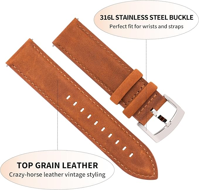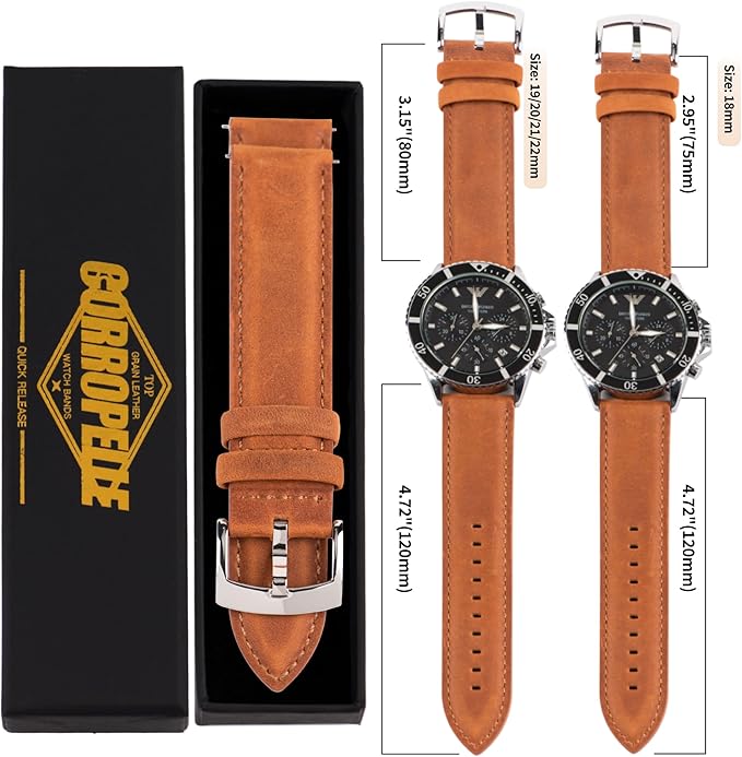 [CORROPELLE] 時計バンド 本革 時計ベルト クイックリリース 18mm 19mm 20mm 21mm 22mm 交換ベルト 工具は不要です レトロ エレガント クレイジーホースレザー 防汗 触覚の裏地 時計ベルト 男女兼用 | KAZESHOP