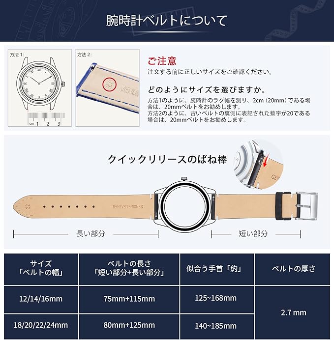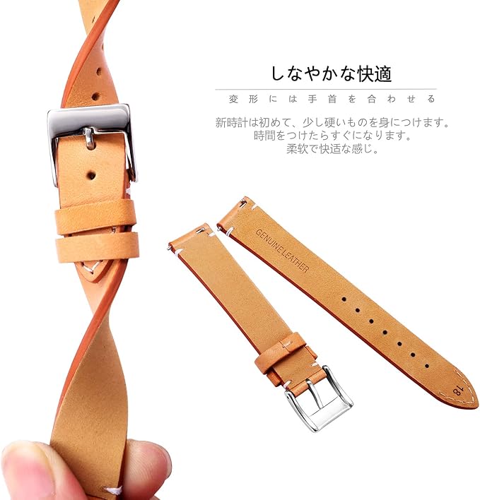 高品質な材料:当社の時計バンドは柔らかく、防水と耐久を兼ね備えるイタリアのカーフスキンで作られています。ポリッシュなステンレス製のバックルにより、非常に頑丈で、優雅と気持ち良く使えできます。