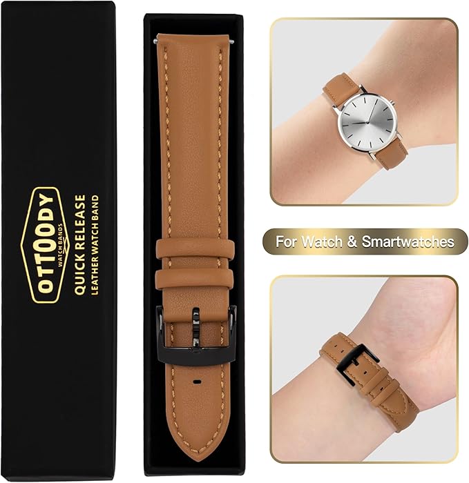 [OTTOODY] 本革時計バンド 時計ベルト22mm 21mm 20mm 18mm 16mm クイックリリース ベルト 男、女性用, エレガント&ソフト カーフレザー 腕時計交換バンド 工具は不要 時計とスマートウォッチ用 | KAZESHOP