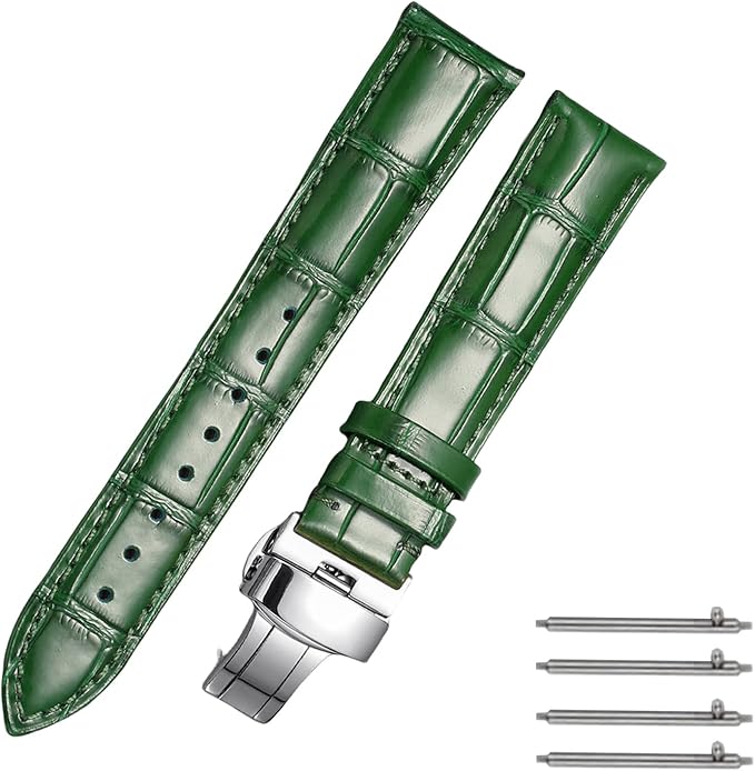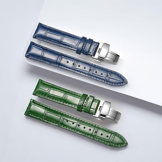 TRISTRAPSクイックリリース 本革時計バンド ブラック ブルー Dバックル 18mm/20mm/22mm/24mm 腕時計ベルト 交換用 革ベルト