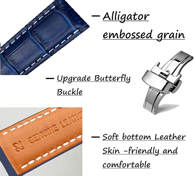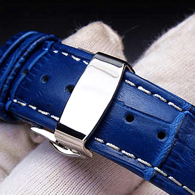 [Moran] 本革時計バンドクイックリリースポリッシュ展開Dバックル、男性女性用,18mm-24mmカーフレザー交換用時計ストラップ、防水、防汗