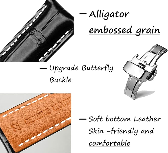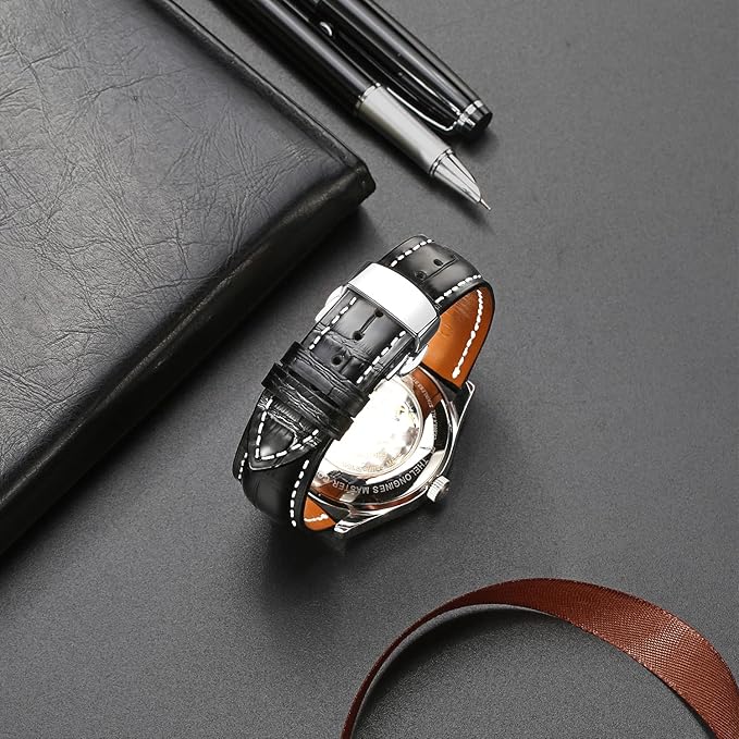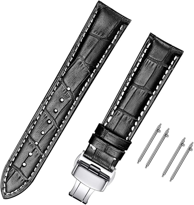 Moran本革時計バンドクイックリリースポリッシュ展開Dバックル、男性女性用,18mm-24mmカーフレザー交換用時計ストラップ、防水、防汗