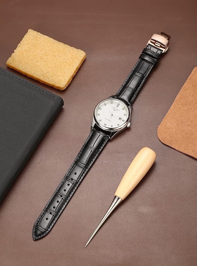 [Moran] 本革時計バンドクイックリリースポリッシュ展開Dバックル、男性女性用,18mm-24mmカーフレザー交換用時計ストラップ、防水、防汗