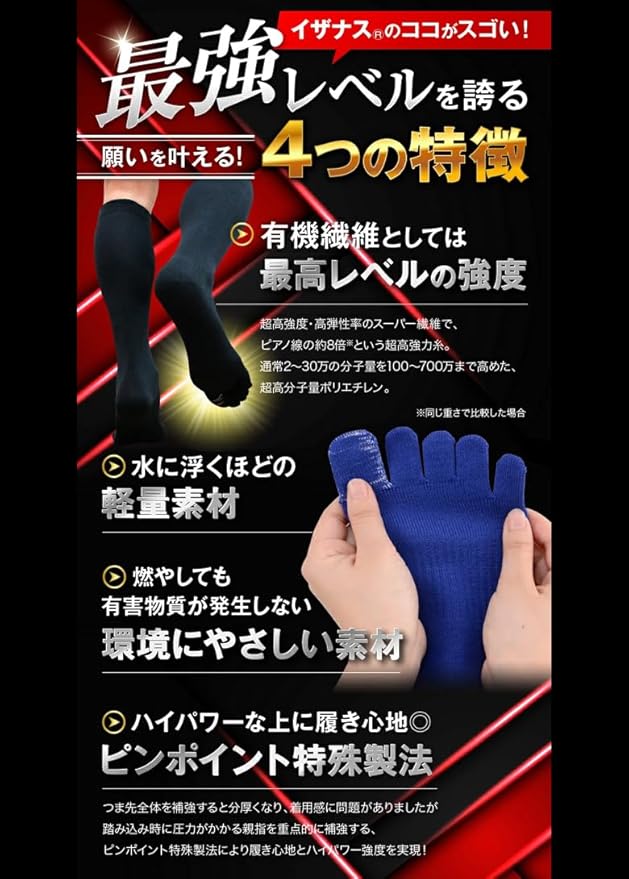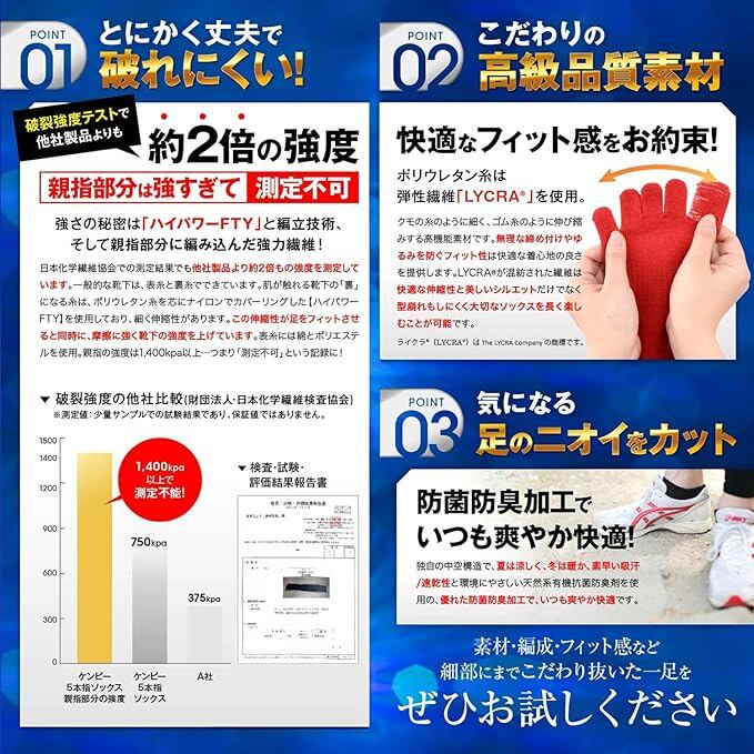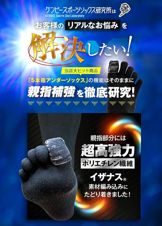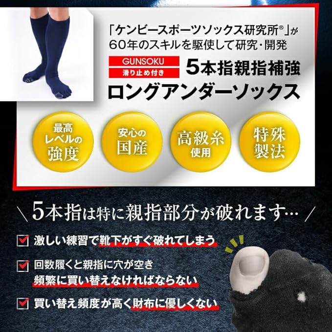 [すべり止め付き] 親指補強 5本指ソックス ハイソックス 2足セット 抗菌 防臭 日本製 [ケンビー]
