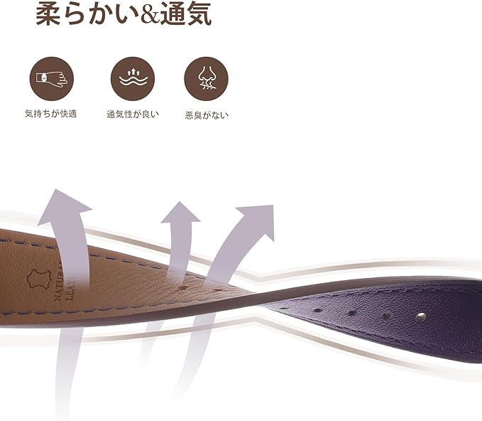 【スリムで軽量なデザイン】バンドの先端に向けてシェイプされているため、すっきりと美しい印象を与えます。上質なバックルと組み合わされた本革は、頑丈さと優雅さをシームレスに融合し、独自のスタイルを表現します。ビジネスミーティング、レジャー、フォーマルなイベントなど、あらゆるシーンに合わせてお使いいただけます。