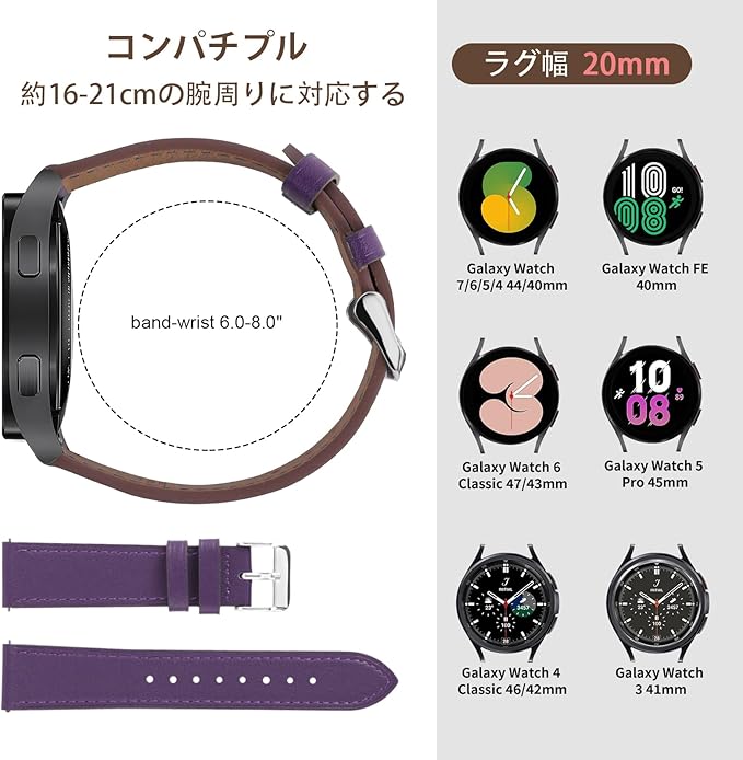 【対応機種】ほとんど20mm幅の時計バンドに対応します:Samsung Galaxy Watch 7 40mm 44mm、 Samsung Galaxy Watch FE 40mm、Galaxy Watch 6 40mm 44mm、 Watch 6 Classic 43mm 47mm、 Galaxy Watch 5 40mm 44mm、 Watch 5 Pro 45mm、 Galaxy Watch 4 40mm 44mm、 Watch 4 Classic 42mm 46mm、 Galaxy Watch Active 2 40mm 44mm、 Galaxy Watch 3 41mm、 Galaxy Watch Active 40mm、 Galaxy Watch 42mm、 Garmin Vivoactive 3、 Gear Sport、 Gear S2 Classic。スマートウォッチは含まれていません。ご購入前に時計の型番をご確認ください。