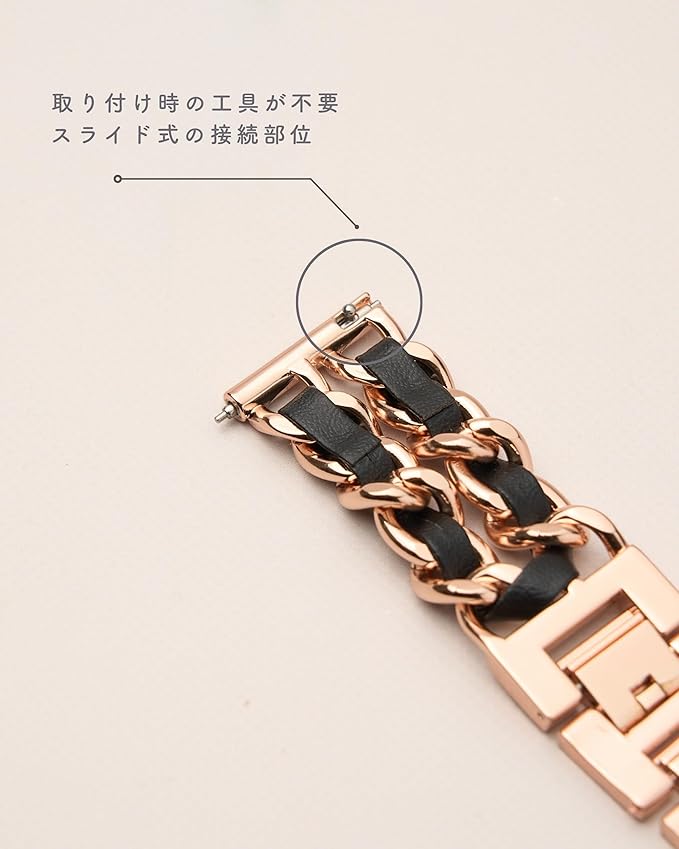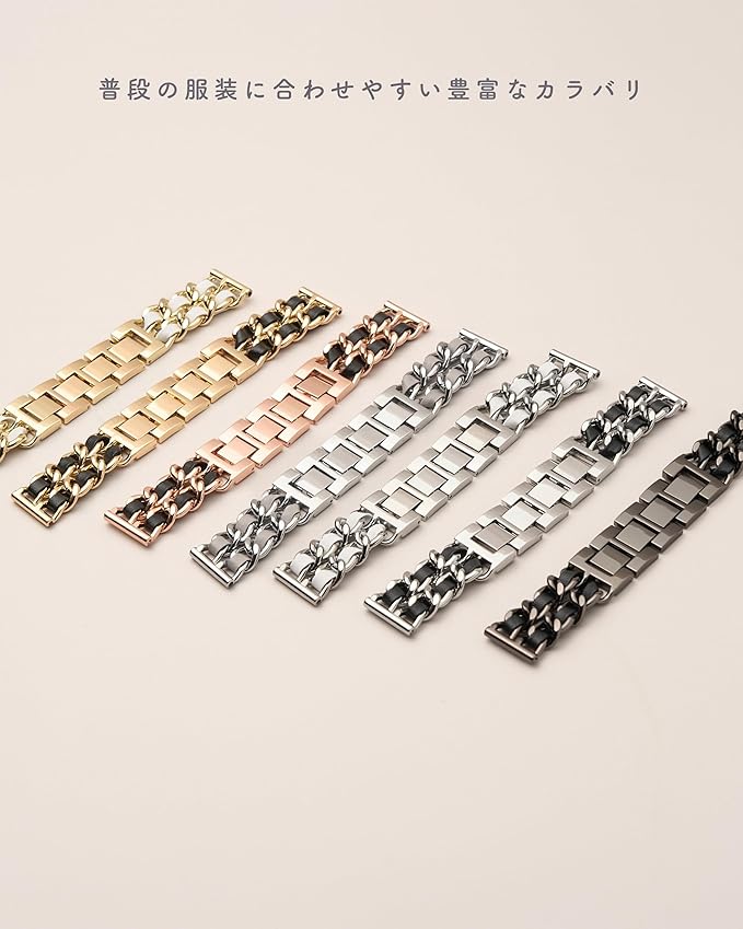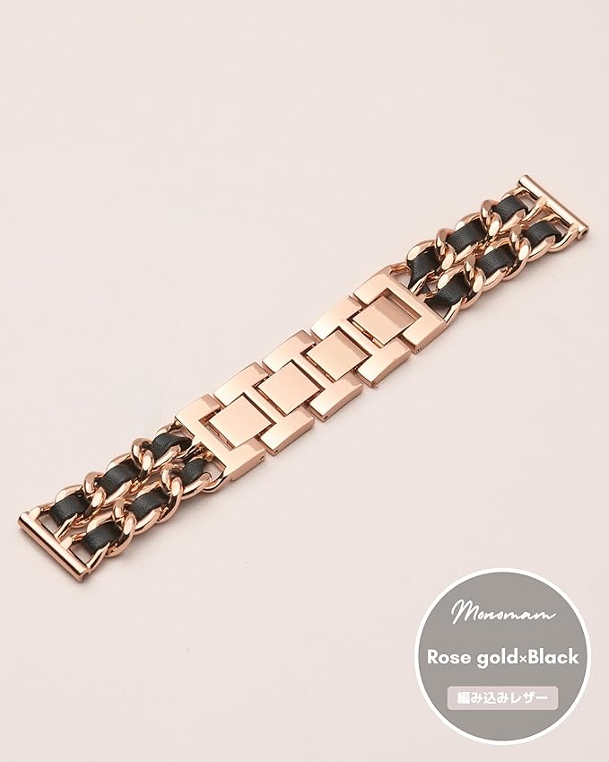 日本発コンパクトスマートウォッチブランド「Monomam(モノマム)」からステンレスバンドに本革を編み込んだチェーンベルトが登場。ステンレスと本革の組み合わせでよりモダンな印象に。女性の腕回りにアクセサリー感覚で身につけらるデザインをコンセプトに別注を行いました。人気のROSEGOLDから定番カラーのSILVER・GOLD・BLACKで取り揃え、高品質のステンレス素材を使用し、高級感あふれるステンレスバンドに仕上げました。コーデのアクセントにおすすめのステンレスバンドです。