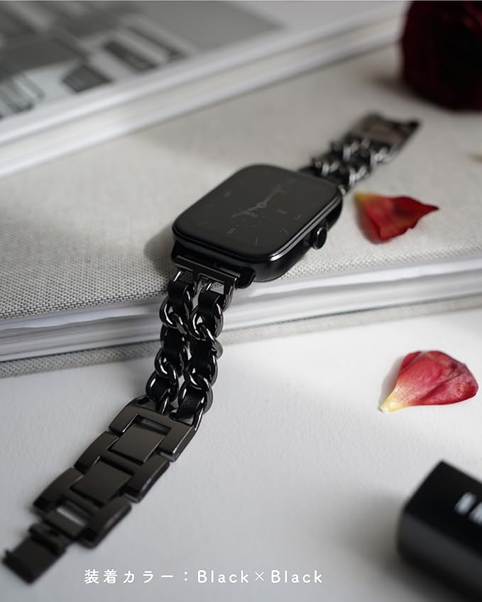 【高品質のステンレス素材を使用し高級感UP】高品質のステンレス素材を使用し、錆や傷に強く長くご使用いただけます。乾いた布で拭き取るだけで手入れも簡単。程よい光沢感と女性の腕周りに負担にならない重量感が洗練された高級感を醸し出します。ビジネスシーンやフォーマルな場面でも違和感なくお使いいただけるデザインと質感に仕上がりました。スマートウォッチが高見えするステンレスバンドです。