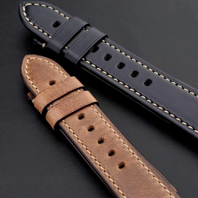 【高級な素材】厳選されたホーウィンレザーを採用しております。使い込むほどに風合いが増すフ本革のナチュラルさを全面的に引き出したストラップです。