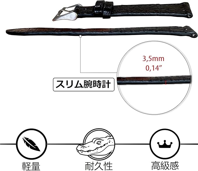 ✅【材料】表地: クロコダイル・ワニ、内部:牛革。スリム、細い、薄い帯。