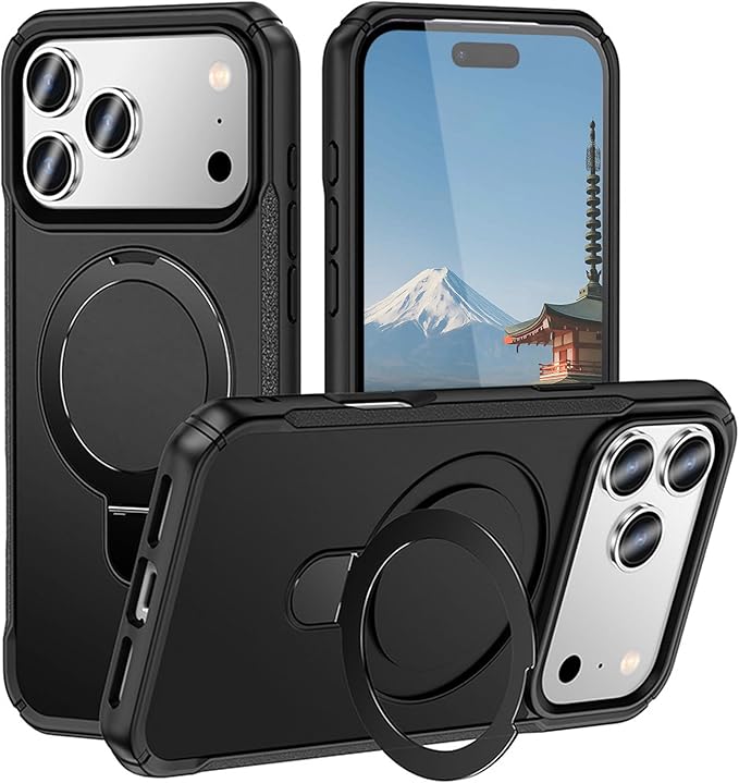 iPhone 17 Pro Max 用 ケース MagSafe対応 360 回転スタンド リング付き マットカラー 米軍規格 耐衝撃 カメラ保護 軽量 ストラップホール付き (クリア) | KAZESHOP