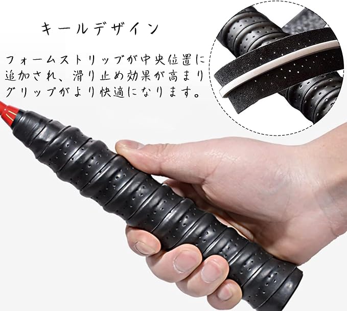 【古いグリップがよみがえる】巻くだけで完成!グリップ交換よりも簡単です。グリップを太くしたいときは、重ねて巻くだけなのでカンタンです!穴の開いたデザインは湿気を効果的に除去し、発汗しやすい選手に理想的です。
