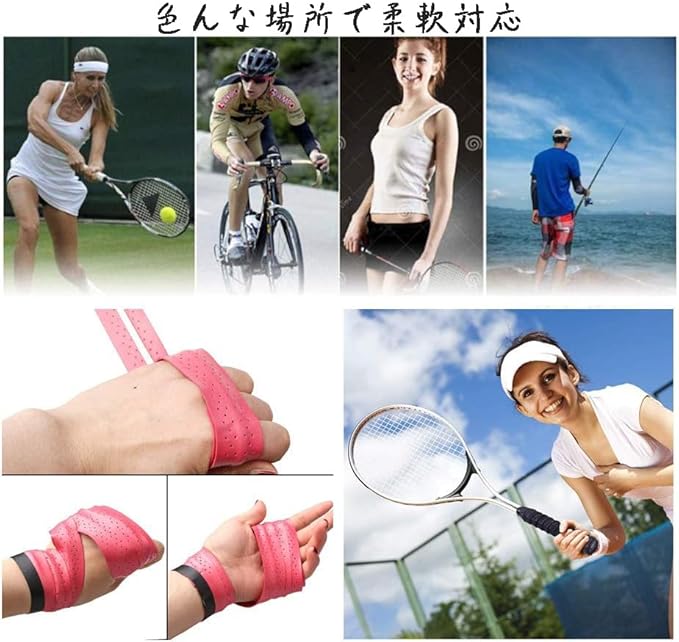 【使用範囲】テニスとバドミントンはもちろん、ゴルフ、釣り竿、車いすハンドル、ツールハンドル、自転車ハンドルなども使えます。グリップテープを使用することでラケットが握りやすくなるだけではなく、耐久性のアップにもつながります。