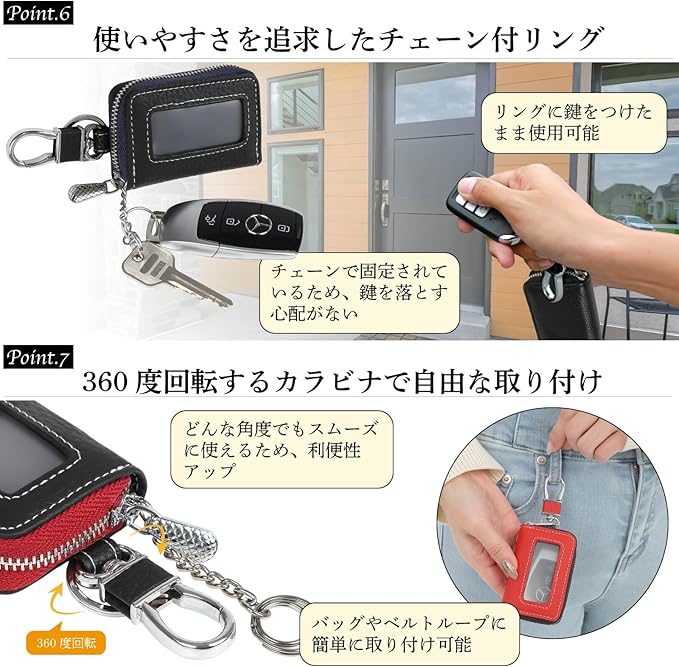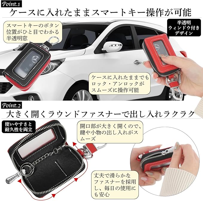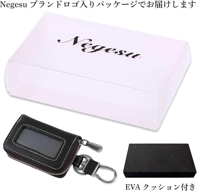 [ネグエス] スマートキーケース 窓付き キーケース スマートキー対応 ズレ防止クッション付き 車 革 メンズ レディース