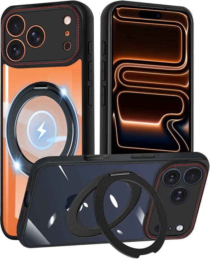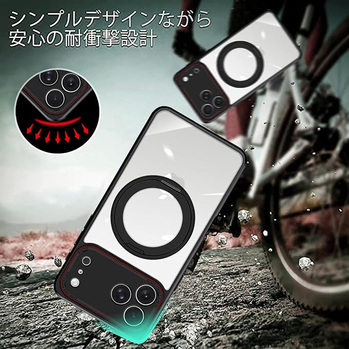 iPhone 17 Pro Max ケース クリア リング付き 360 回転スタンド MagSafe対応 ワイアレス充電対応 耐衝撃 アイフォン 17 Pro Max カバー 軽量 薄型 人気 17promax スマホケース 透明 PC + TPU 車載ホルダー対応 (クリア) | KAZESHOP