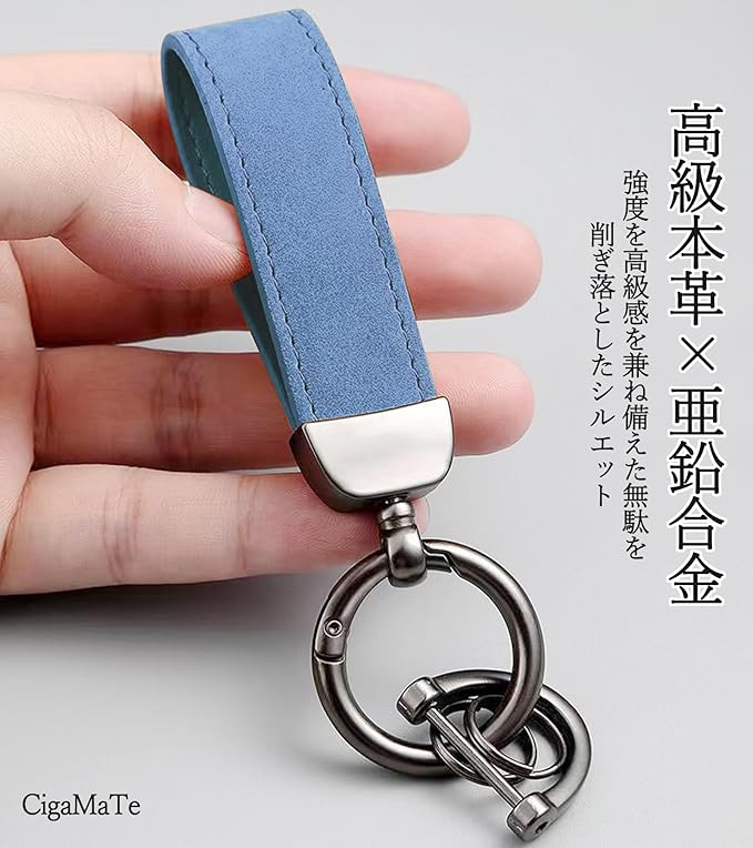 [CigaMaTe] 本革 車用キーホルダー キーリング キーチェーン ダブルリング カラビナ 車 バイク 自転車 リング 取り外し 防錆 亜鉛合金 ストラップ 手触りいい シンプルデザイン 紛失防止 おしゃれ 色が選ばれる | KAZESHOP