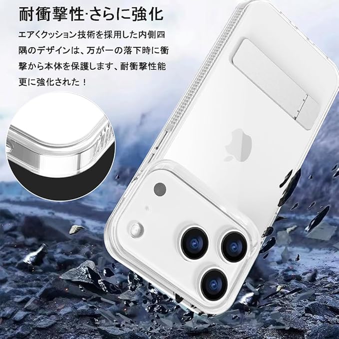 【極限透明感・機能スタンド】YUYIB スマホケース 対応 iPhone17 Pro Max ケース クリア スタンド機能 (メタルキック 3wayスタンドモード) 衝撃吸収 黄変防止/擦り傷防止 耐久性 薄型 軽量 対応 アイホン17 プロマックスカバー (クリア) | KAZESHOP
