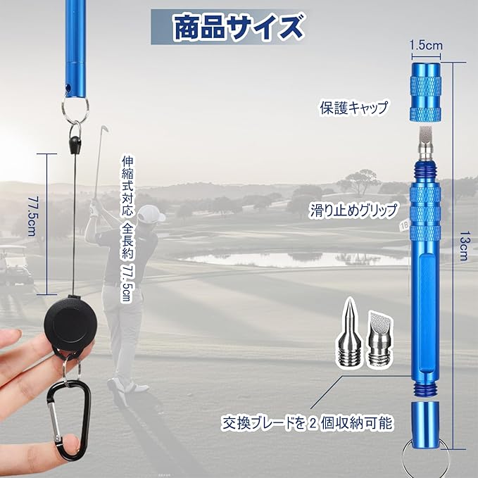 高品質素材&長寿命設計 ステンレス鋼と高品質合金を採用したゴルフクラブクリーナー。錆びにくく、折れにくい構造で、長期間の使用でも安心。ゴルフクラブ シャープナーとして耐久性抜群。