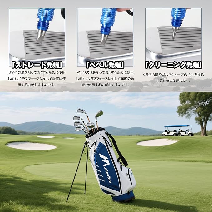 交換チップ付き&多機能対応 付属のチップでU溝・V溝・ウェッジ 溝に幅広く対応可能。ゴルフ クラブ シャープナーとして、多様なクラブにフィットし、正確なショットをサポート。