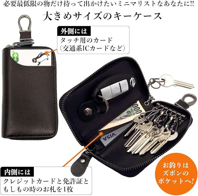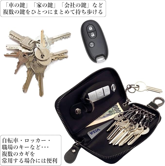 [ネグエス] キーケース メンズ スマートキーケース スマートキー対応 車 カード入れ付き 大容量
