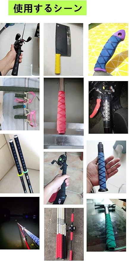 釣竿のグリップをはじめ、テニスラケット、野球用バット、その他棒状でグリップを活かすスポーツ器具、工具、大工工具、農機具などに幅広くご使用いただけます。
