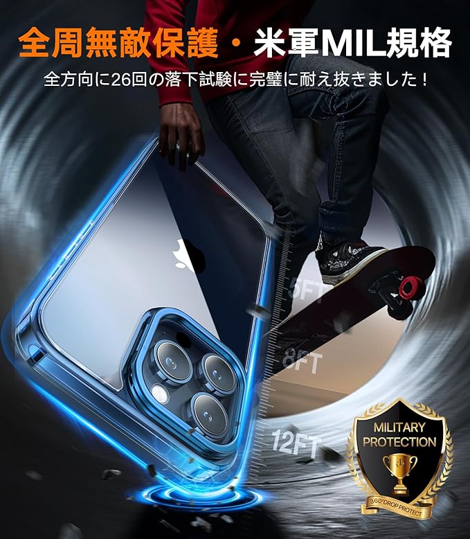 【ダイヤ級耐衝撃が実現!コンクリートから落下も無敵!】ダイヤモンド級の抗衝撃ガラスは、業界最高レベルの硬度を持ち、日常の傷や擦れに軽々と対処します。さらに、ドイツ製TPUエッジの防衝撃システムは、独自の360 衝撃吸収設計により、プロフェッショナルな保護を提供します。多くのお客様が実際に経験から、何度もiPhoneが地面に落下しても、iPhoneとケースは一切無傷です!*SGS認証番号:GZMR220300626201|認証機関:SGS - CSTC Standards Testing Center|認証時間:Mar 28, 2022