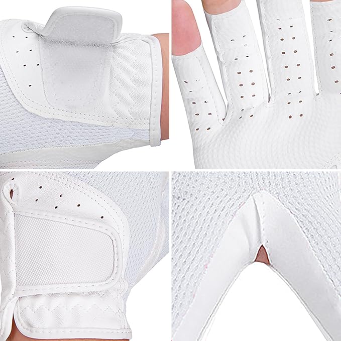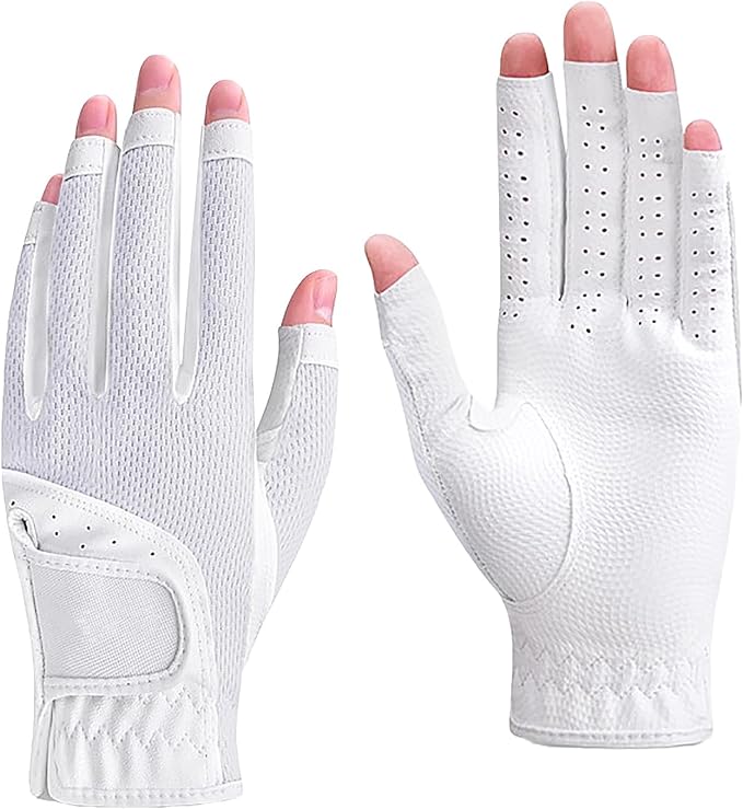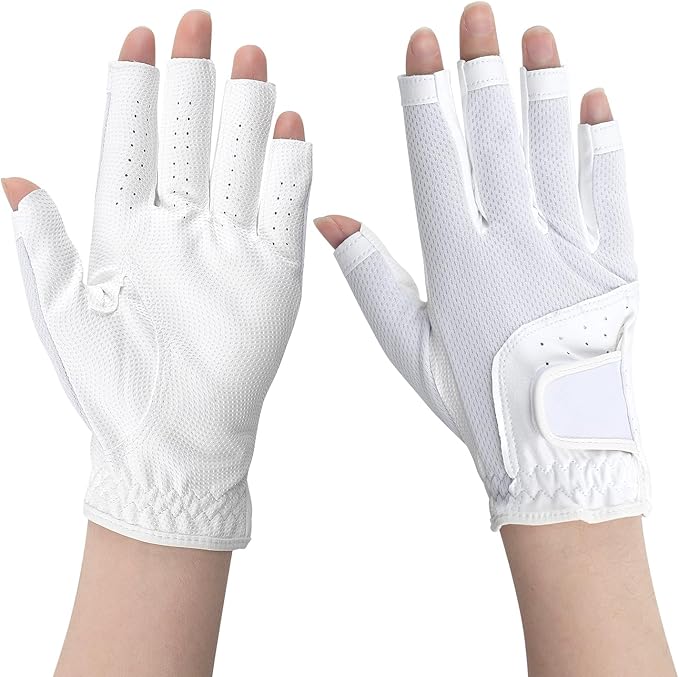 ゴルフグローブ レディース 両手 指先カット グローブ 手袋 通気性 メッシュ 高いグリップ力 UVカット 伸縮性 ソフト ストレッチ生地 耐摩耗性 調整可能 滑りにくい ゴルフ アウトドア シンプル 夏 おしゃれ ホワイト | KAZESHOP