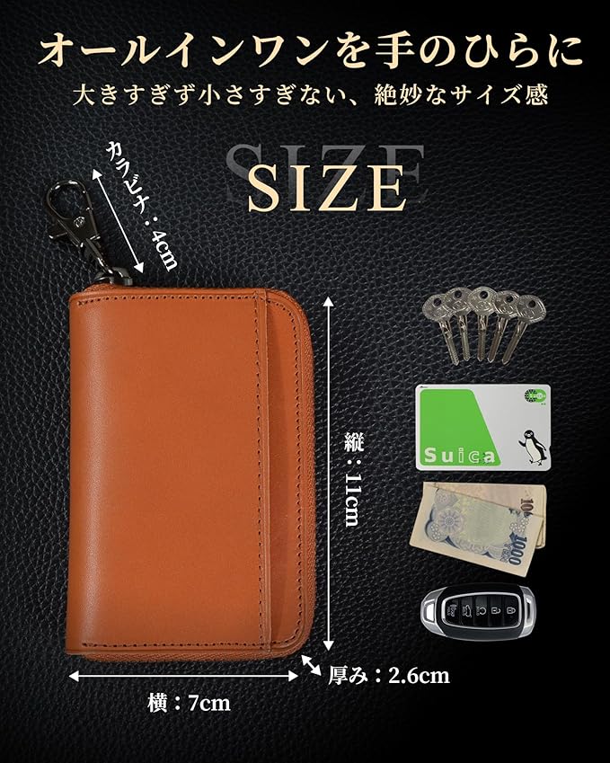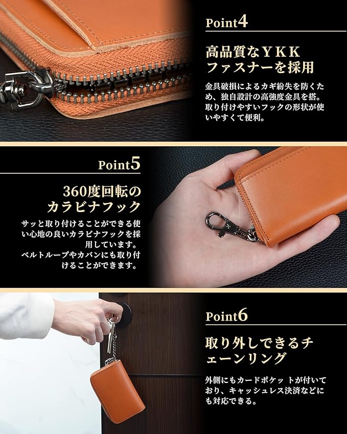 キーケース メンズ 栃木レザー 日本製 多機能 本革 5連フック ファスナー スマートキーケース 車 鍵 コンパクト カード入れ key case プレゼント