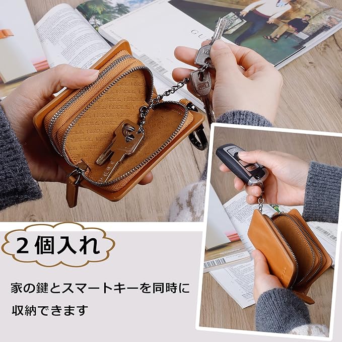[VISOUL] スマートキーケース 2個収納 キーケース 本革 レザー スマートキー スマートキーカバー ケース キーホルダー キーレス レディース メンズ カラビナ付き車の鍵が 入る キー ケース スマートキー 車キーケース | KAZESHOP