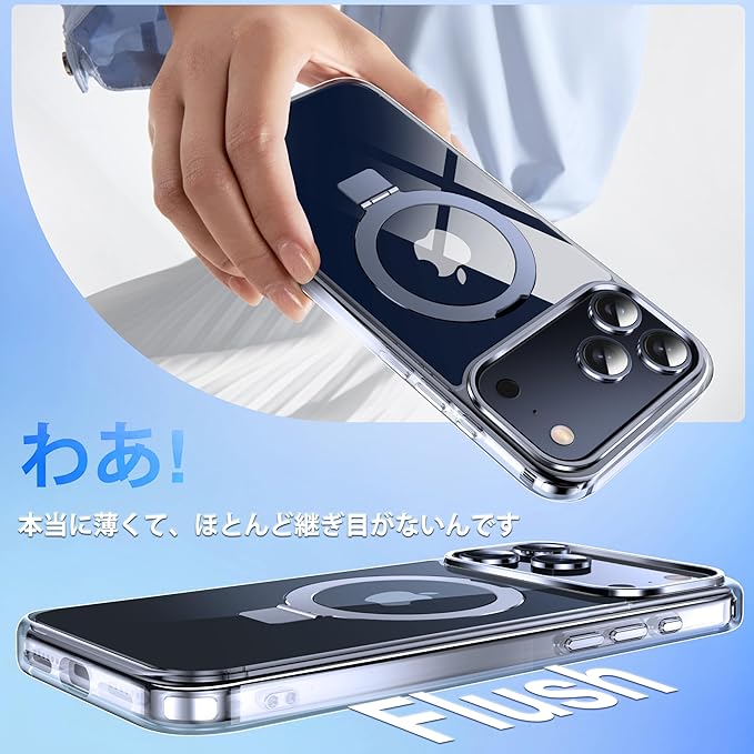 【薄い。 ライト。 滑り止め、断熱、ネバーイエロー】キックスタンド付き半透明磁気iPhone17 pro max ケースは人間工学に基づいたデザインを採用しています、滑り止め性能に優れています。正確なカットアウトとスリムなデザインにより、携帯電話の機能を最大限に活用できます。ブラケットの溝の独自の深さにより、携帯電話のパーマを気にせずに、自由にポケットに入れることができます。 また、すべての素材とコーティングは、時間の経過による黄ばみを防ぐために最適化されています。