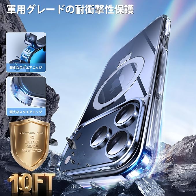 【全面保護】iPhone 17 pro max 磁気スタンドケースは背面に高級ハード PC 素材、4 層緩衝構造の TPU 素材バンパーで作られており、多層耐衝撃保護を提供し。携帯電話を衝撃から効果的に保護します、毎日の落下や衝撃 [最大 10 フィート]。 カメラ上の 2.5 mm の盛り上がったエッジはレンズの傷を防ぎ、画面上の 1.5 mm のベゼルは携帯電話の画面への損傷を防ぎます。