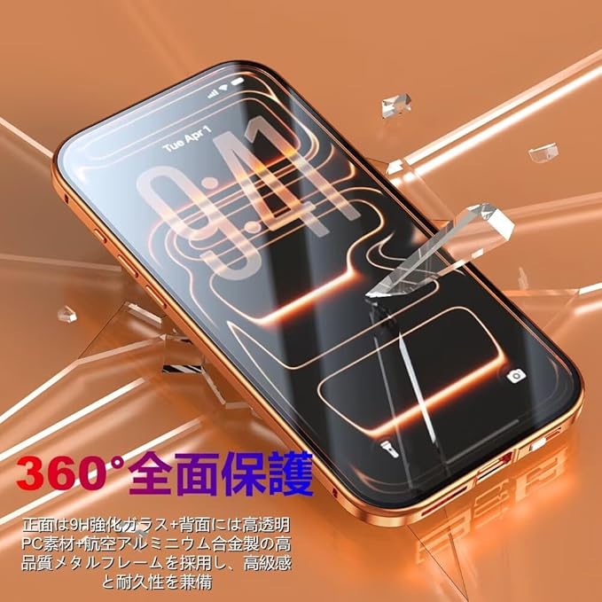 高級メタルフレーム&高透明背面パネル:フレームは高品質の航空アルミ合金を使用し、耐久性と高級感を兼ね備えています。背面には高透明PC素材を採用し、iPhone本来の美しさを際立たせます。メタルフレームと高透明耐震PCパネルの組み合わせで、スマートフォンを全方位からしっかり保護します。