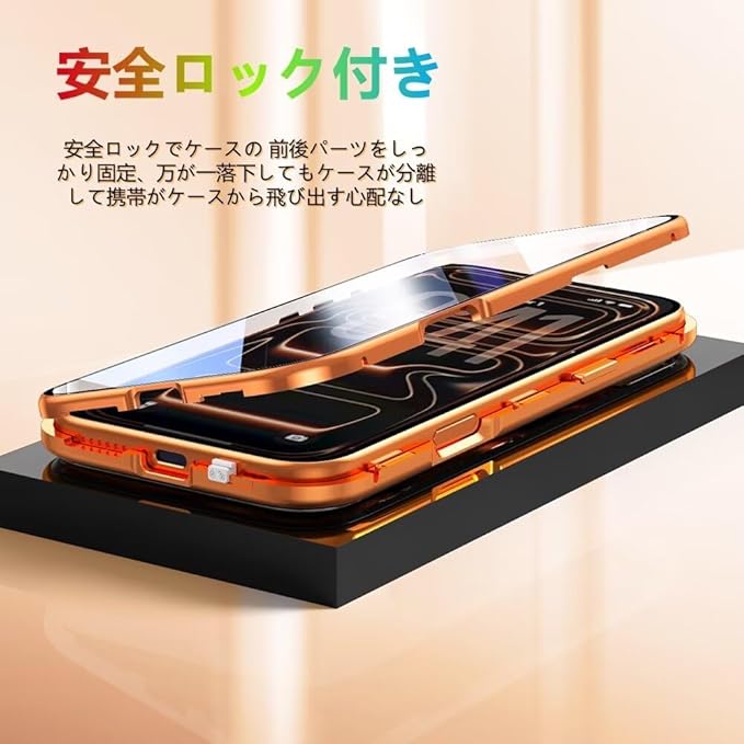安全ロック設計:ケース底部には安全ロックが搭載されており、前後カバーをしっかり固定。万が一落下してもケースが分離せず、スマホが飛び出す心配はありません。装着や取り外しも簡単です。※装着時は前後カバーの底部を正しく合わせ、隙間なくフィットしていることをご確認ください。