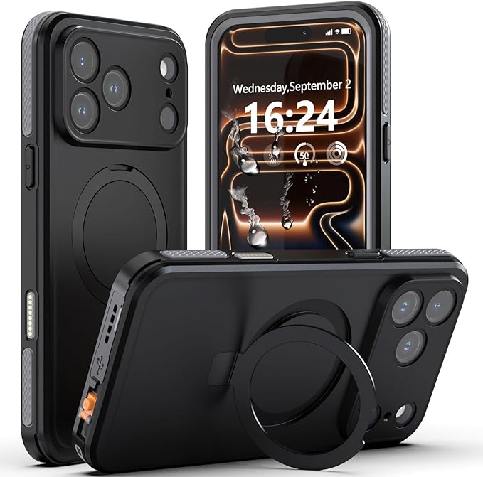 【防水・スタンド機能・MagSafe対応】UMITTOS iPhone 17 Pro Max 用 ケース 防水 衝撃吸収 全面保護 防雪 防塵 水中撮影対応 顔認証対応 滑り止め 手持ちやすい 頑丈 耐衝撃 ストラップ付き 雨の日、お風呂など適用 防水ケース(6.9インチ) | KAZESHOP