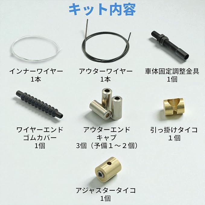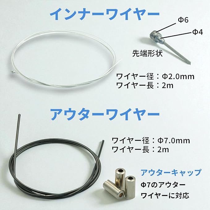 特長: 長さ調整可能:ワイヤーの長さを自由に調節でき、各種バイクやニーズにフィット 高耐久素材使用:優れた耐摩耗性で、長期間使用可能 カスタム対応:カスタムバイクやメンテナンスに最適 取り付け簡単:シンプルな構造で、初心者でも取り付けが簡単