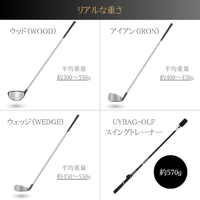 【リアルな重さ】 実際のクラブに近い重さとしなりで、リアルなスイング感覚を再現。 スイング練習が「実戦に活きる」と実感できます。