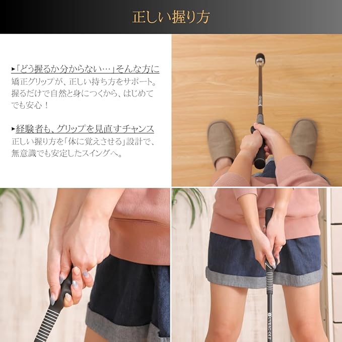 【室内でも使える】 短め設計&安全な構造だから、室内でも安心してスイング練習が可能。 外に出られない日でも、自宅でコツコツ上達できる。