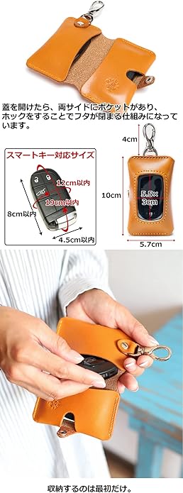 ダブルスマートキーケース 【Ricky's】 ほぼ 全機種対応 スマートキー 2個収納 キーケース クリア窓 窓付き 鍵 家 玄関 ドアキー YKKAP LIXIL 三協アルミ メンズ レディース 本革 革 栃木レザー リッキーズ | KAZESHOP