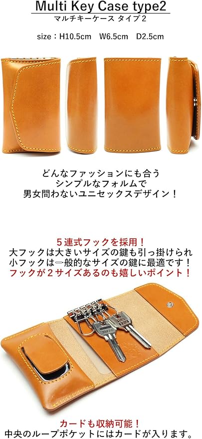マルチキーケース タイプⅡ 【Ricky's】 スマートキー 収納 ポケット リモコン リモコンキー キーレス ケース ほぼ 全機種対応 本革 革 レザー 栃木レザー トヨタ 日産 ホンダ マツダ スバル ダイハツ スズキ 三菱 鍵 日本製 リッキーズ | KAZESHOP
