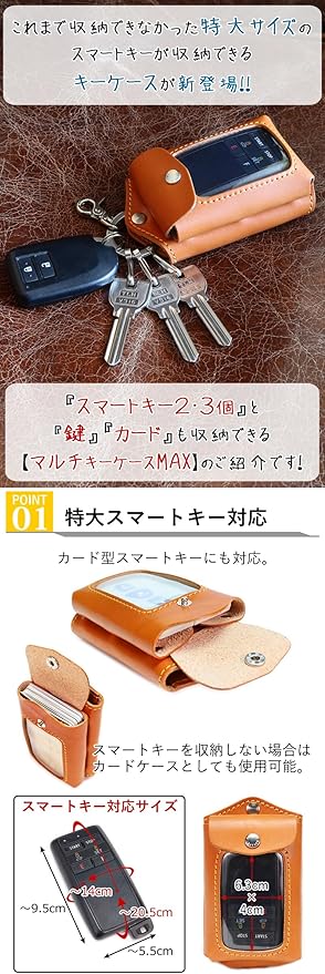 マルチキーケースMAX 【Ricky's】 スマートキー 収納 ポケット2個収納 3個収納 ケース ほぼ 全機種対応トヨタ 日産 ホンダ マツダ スバル ダイハツ スズキ 三菱 鍵 本革 革 レザー 栃木レザー 日本製 リッキーズ | KAZESHOP