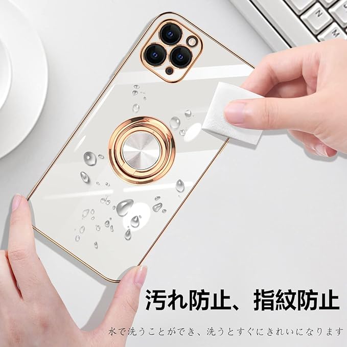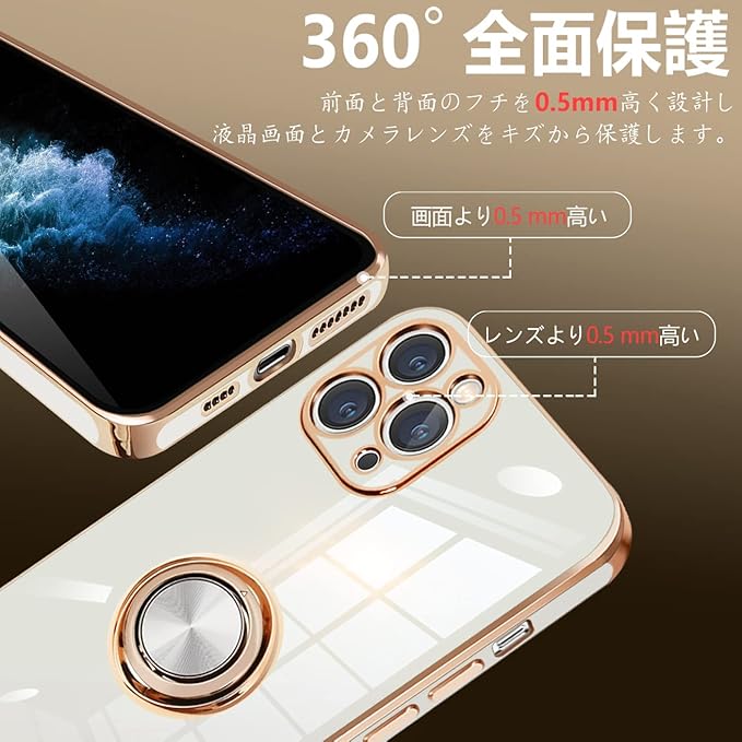 iPhone11 Pro Max 用 ケース リング付き アイフォン11promax リング カバー 耐衝撃 TPU メッキ加工 360 回転 スタンド機能 車載ホルダー ストラップホール付き 6.5インチ(ホワイト) | KAZESHOP