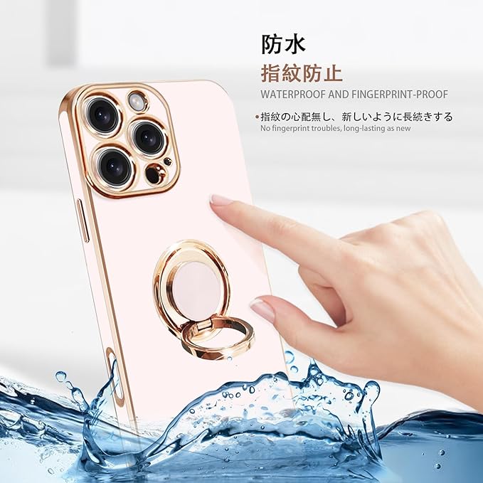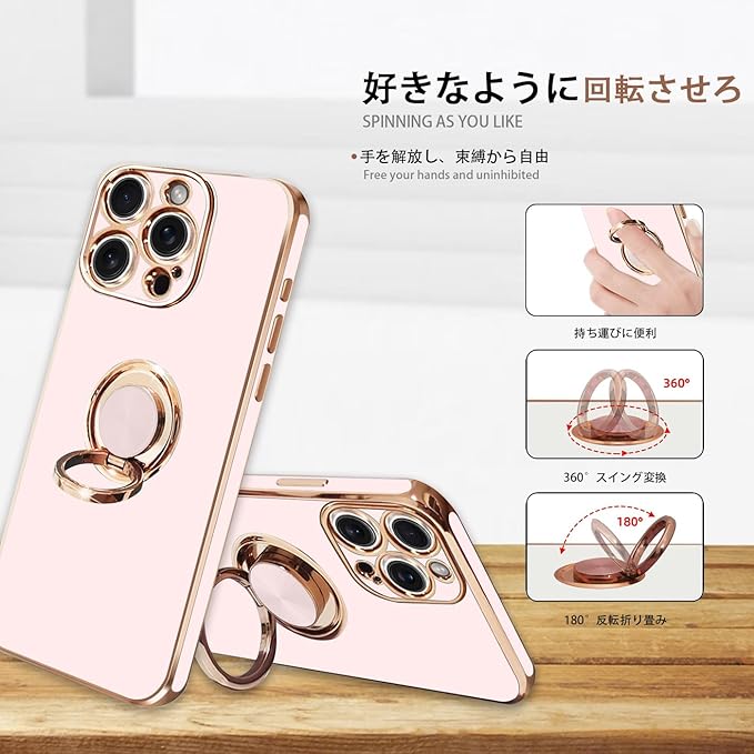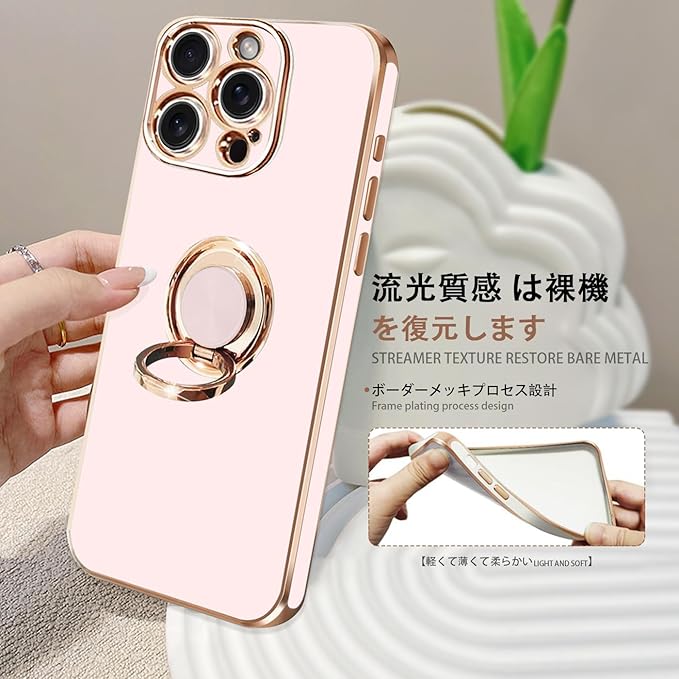 For iPhone 16 Pro Max 用の ケース リング付き アイフォン16Pro Max 用の リング カバー 全面保護 スマホケース TPU 耐衝撃 スタンド機能 車載スタンド対応 ストラップホール付き 擦り傷防止 メッキ加工 6.9インチ(ピンク) | KAZESHOP