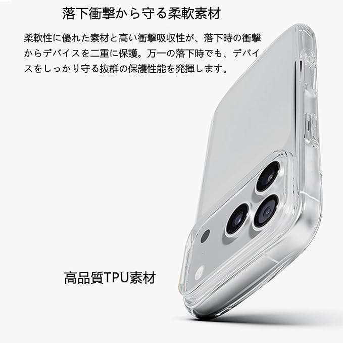 【しっかりした保護性能と使い心地の良さ】硬さと柔らかさのバランスが取れた設計TPU素材と四隅の設計が、日常的な衝撃や落下から端末を守るのに役立ちます。しなやかながらもしっかりした素材感で、手に馴染む使い心地をお楽しみいただけます。
