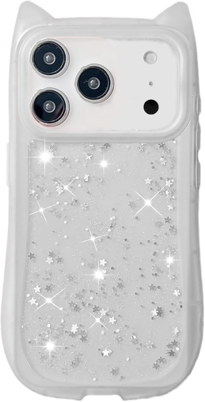 MuZiF iPhone 17 Pro Max 用 ケース クリア キラキラ 可愛い 猫耳 TPソフトケース 透明 かわいい ネコミミ 韓国 薄くて軽い 人気 おしゃれ 落下防止 耐衝撃 携帯カバー 17 Pro Max 用 スマホケース (iPhone 17 Pro Max 用,クリア) | KAZESHOP